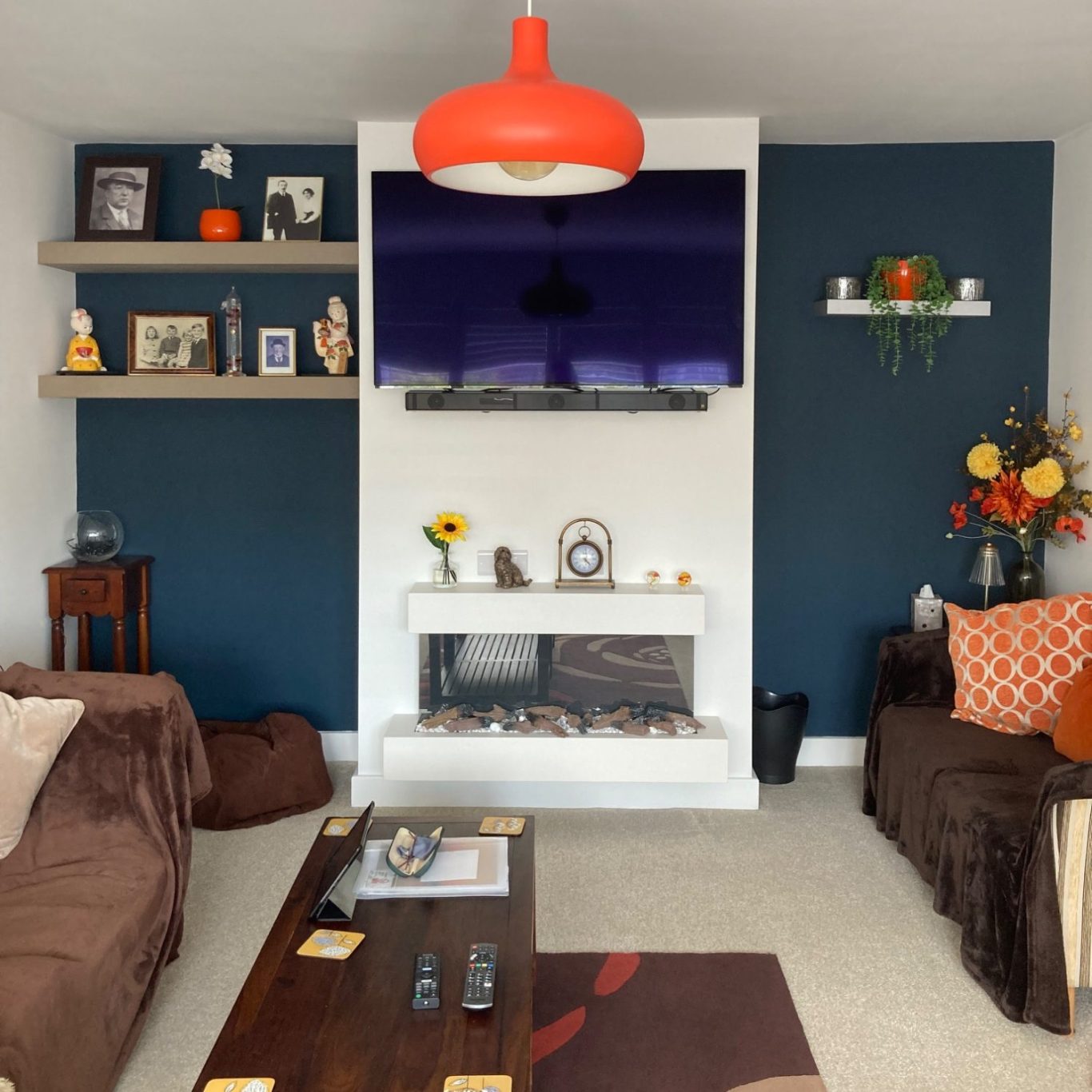 Cosy, stylish lounge and feature fireplace