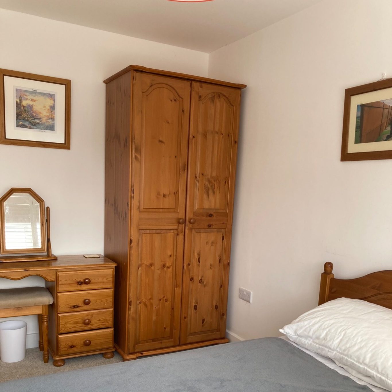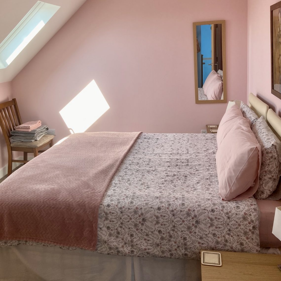 Our ground floor bedroom offers added convenience and flexibility, serviced by a nearby cloakroom. It features a comfortable single bed, with the option of an additional high-quality inflatable mattress, allowing the room to be easily configured as a twin if needed.